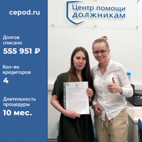 Списано долгов на 55 951 р. за 10 месяцев. Кол-во кредиторов - 4 шт.